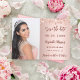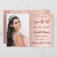 Um moderno e elegante Salve a Data para uma Quinceañera. fundo rosa de gradiente dourado, decorado com confete rosa dourado. Personalize e adicione uma foto, data e nome. O texto: Salvar a Data é gravado com um script de estilo com letra de tendência.