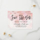 A Festa de aniversário Quinceanera Guarda A Data. Design com fundo em camadas rosa-ouro e script de pincel moderno ''salve a data''.