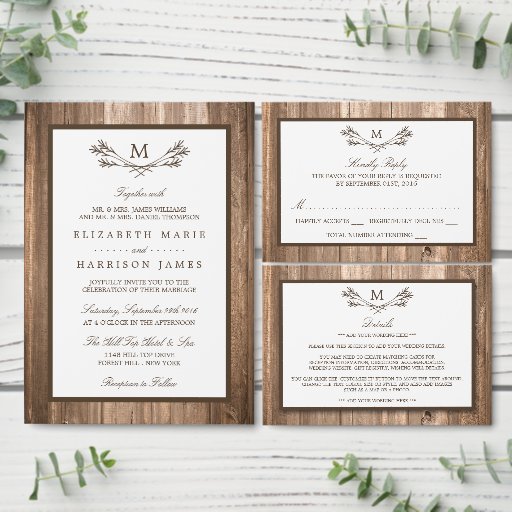 Estes cartões salve a data são perfeitos para qualquer casal planejando um casamento no país rústico. A design apresenta um design de ramificação de monograma em um fundo de efeito de madeira rústica. O design simples pode ser personalizado para se adequar ao seu evento especial e será o anúncio perfeito para qualquer partido temático de chic no país, incluindo chás de panela, noivados, chás de casamento, festas de aniversário e muito, muito mais.