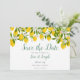 Este cartão de data de salvamento de flores de limão botânico apresenta uma elegante data de salvamento acima dos seus detalhes definidos em tipografia chique. Concebido por Thisisnotme©