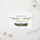 Um casamento salvou a data com a ilustração de dois galhos de árvores verdes e uma canoa verde.