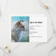 Salve o cartão de encontro com uma foto de uma raposa fofa que está sozinha. Colocado sobre um fundo azul de inclinação.