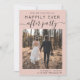 O cor-de-rosa branco moderno salva o anúncio de data para sua liberação postada ou poste uma pequena recepção de casamento com sua foto e "Felizmente Nunca Depois da Festa" em uma mistura de simples tipografia e roteiro com pontos fortes. Em sua foto, adicione seus primeiros nomes e recepção ou data e local da festa.