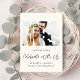 O elopemento moderno de creme leve ou o anúncio e recepção privados de casamento salvam a data que apresenta sua foto em um quadro de "Sr. & Sra.", "Celebrar conosco" em um roteiro de chic e seus nomes, data de recepção e local em uma simples tipografia. No verso, personalize seu anúncio e adicione seus nomes em um script semelhante a assinatura.