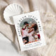 Elegante ou anúncio de casamento privado e recepção de casamento salvam a data. A frente apresenta sua foto em um quadro de arco e "Feliz Festa Depois" em tipografia serif clássica. Adicione seus primeiros nomes, data de recepção e local. No verso, personalize seus detalhes de salvar a data e adicione seus nomes em um script semelhante a assinatura.
