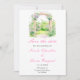 Bonito casamento guarde o cartão com um arco floral e flores roxas cor-de-rosa. Perfeito para um casamento de primavera ou verão. As palavras podem ser alteradas para se adequarem aos seus próprios detalhes ou requisitos
