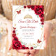 Red, gold and white Quinceanera celebration save the date card. Features, script font, gold butterflies, watercolor roses and tiara. Perfect for an elegant princess style glam celebration. Personalize with your own details. Printed Zazzle cards or instant download digital printable template.