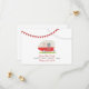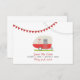 Um casamento, exceto a data com a ilustração de um trailer vermelho inspirado em vintage estacionado na grama verde. O reboque tem uma caixa de janela cheio de margaridas coloridas e suspensórios de olhos pretos. Cinza e bunting vermelho no topo. Procure por convites de casamento e mais na Paperie da Jill.