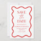 This is an Red White Elegant Wavy Border Wedding Save The Date Card!
