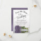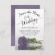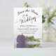 Este casamento Salve o cartão de data é romântico, elegante, elegante e bonito. Apresenta uma fotografia de um solteiro roxo empoeirado ou rosa de cor lavanda, de longa duração, refletindo numa piscina de água com ondas e ondulações. O texto é uma caligrafia de script de rico sobre fundo branco. As costas apresentam um adorável padrão marmoreado. Maneira perfeita de deixar seus amigos e família saberem sobre seu próximo casamento.