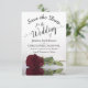 Este casamento Salve o cartão de data é romântico, elegante, elegante e bonito. Apresenta uma fotografia de um rosa colorido de solteiro longo e empilhado refletindo em uma piscina de água com ondas e ondulações. O texto é uma caligrafia de script de rico sobre fundo branco. A parte de trás apresenta um padrão de burgundy, marrom ou vinho tinto. Maneira perfeita de deixar seus amigos e família saberem sobre seu próximo casamento.