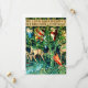 Cartão com a tapeçaria de William Morris Verprocedure com Deer e Shields (1891-1894). Uma cena de bebendo de veados de uma piscina de água e comendo de folhas de árvores em uma floresta verde. Acima deles pendura os escudos dos Cavaleiros da Mesa redonda. Um presente magnífico para os entusiastas de Arthuriana e colecionadores vitorianos de arte.