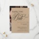 Renovação de voto de foto elegante e clássica salve o cartão de data. Design apresenta um script de tipografia em letras de tendências em um fundo de textura Kraft (não será usado nenhum papel kraft real) e detalhes no lado. Adicione sua foto à parte traseira do cartão.
