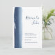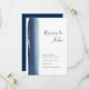 Guarde moderno e criativo o cartão de data em espanhol, com um simples design com um marinho azul de pincelada de aquarela no lado esquerdo, sobre um fundo branco. No canto superior direito está o título "Reserva la Fecha", em uma letra manuscrita, no alinhamento direito. Na parte inferior esquerda estão os detalhes do seu casamento em uma fonte sans serif, no alinhamento esquerdo. A parte de trás é um azul marinho sólido. Um design único para um casal artístico.