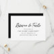Moderno salve o cartão de data com as palavras, "reserva la fecha" em uma letra de escrita manual de pincel e três linhas de texto para seus detalhes. O verso é um preto sólido com uma linha de texto em branco para o seu site de casamento ou outras informações adicionais. A parte traseira pode ser alterada para qualquer cor que você desejar. Um design simples, mas elegante, com estilo minimalista.