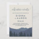 Este recuo à aventura das montanhas aguarda a salvação do cartão é perfeito para um casamento de destino moderno. O design apresenta uma serena cordilheira azul-aquática com uma floresta de árvores verdes em primeiro plano.