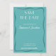 Featuring a rich teal blue background, this design feels fresh, confident, and timeless all at once. The color evokes calm coastal vibes while still offering enough depth to stand out, making it ideal for destination weddings, outdoor celebrations, modern ceremonies, and couples who want something beyond traditional neutrals. A hand-drawn wavy frame adds organic movement and retro charm, giving the card a playful yet refined personality.