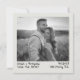 Save the Date for your wedding with this fun retro instant camera photo style square save the date with vintage style and a black and white photo. This save the date is printed on a square card like a classic instant photo. Captioned with your names, wedding date, and location in a handwritten style. A unique way to share the news of your big day! Details about your wedding on the back including a place for your wedding website in text and QR code format.