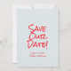 Este casamento moderno e retrô minimalista Salve a Modelo de Data é excelente para você. Se você estiver procurando um Modelo de Data de Casamento bonito, elegante e fácil de personalizar. Um modelo muito elegante e único. Que apresenta o fundo azul-claro do céu vintage. Com um texto vermelho vívido e manuscrito, caligrafia escrita à mão e óculos de champanhe desenhados à mão. Pegue este casamento de na moda, salve a data e faça seus convites realmente comprometidos.