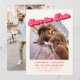 Este moderno save the date rosa e vermelho apresenta um título ousado e inspirado no retro, combinado com uma grande foto na frente para uma primeira impressão marcante. A tipografia limpa e os tons quentes mantêm o layout divertido, sofisticado e fácil de ler. Uma segunda foto aparece no verso, dando aos casais um pouco mais de espaço para compartilhar outro momento favorito, mantendo o design geral simples e equilibrado. Ideal para casais que desejam um save the date com foto em destaque que seja pessoal, moderno e memorável.