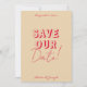 Este casamento moderno e retrô minimalista Salve a Modelo de Data é excelente para você. Se você está procurando um bonito, elegante e fácil personalização Casamento Salve a Modelo de Data. Um casamento de fotos, simples e pálido, com um guião pálido, salve a data. Que apresenta magenta vermelha mínima, economiza a data tipografia em negrito sobre fundo rosa claro e claro, pálido e pálido. Com noivado personalizável ou apenas uma foto casual do noivo e da noiva. Pegue este casamento de na moda, salve a data e faça seus convites realmente comprometidos.