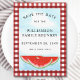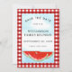 Você está planejando uma reunião de família? Informe a sua família sobre a data com este único cartão Salvar Data. É decorado com melancias de aquarela, céu azul, e um fundo vermelho e branco de búfalos. Facilmente personalizável. Original Watercolor © Michele Davies.