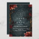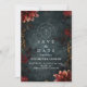 Um opulente design de casamento gótico com florescimento botânico escuro, florais ricos de burgundy e um antigo enquadramento barroco de ouro. Colocada contra um fundo de carvão texturizado, esta composição moderna é ideal para casamentos românticos de Halloween, cerimônias de alternativo, ou dramáticos assuntos de vintagem. Totalmente personalizável para nomes, data e local — criado para casais com talento para o misterioso e o magnífico.