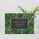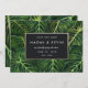 Um design ousado e fresco com palmeiras pintadas e borda falsa de ouro para um tema de verão e casamento tropical.