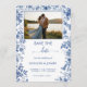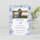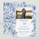 This elegant design features delicate blue toile botanical illustrations framing a customizable engagement photo, creating a beautiful blend of classic European charm and modern romance. The soft dusty blue palette adds sophistication while allowing your photo to take center stage, making this Save the Date both personal and memorable.