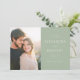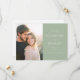 This wedding save the date features a split layout with a warm, romantic photograph on one side and elegant text on a pastel green background. The design combines soft-focus photography with clean typography, using bold serif fonts for names and italicized fonts for dates to create a sophisticated look. The muted color palette of natural tones and soothing greens exudes warmth and anticipation, making it perfect for couples seeking a classic yet modern aesthetic. The minimalistic approach focuses on clarity and simplicity, ensuring that all essential details are communicated beautifully. Ideal for setting the tone for an upcoming celebration, this design is both inviting and timeless.