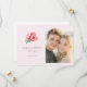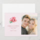 This wedding save the date features a split layout with a soft, watercolor-style pink peony flower on the left and a photo placeholder on the right. The color palette includes shades of pink and green, creating a romantic and elegant aesthetic. The design combines illustrative and photographic elements, with clean typography that highlights the names in bold serif font and other details in a sans-serif style. Perfect for conveying warmth and joy, this template is ideal for couples looking to announce their upcoming nuptials with a touch of sophistication.