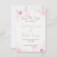 The invitation features a pristine off-white background adorned with a captivating border of romantic pink roses. These exquisite blooms grace both the top and bottom, creating a harmonious frame that encapsulates the essence of love in full bloom. The roses are thoughtfully complemented by a dance of green and pink greenery, along with leaves that delicately intertwine, adding a touch of organic charm to the design.