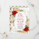 This fun and whimsical save the date invitation features watercolor red, pink and orange roses with foliage on a gold geometric frame. The text combines handwritten script and serif fonts for a stylish and modern look. This is perfect for a spring or summer rustic wedding.