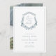 Romântica Foto Azul Floral Salva A Data. Este casamento romântico e na moda salve a data do anúncio mostra lindas flores azuis poeirentas pintadas manualmente em uma crista | coroa com 'salvar a data' num guião elegante. A parte traseira do convite inclui um padrão de capricho, mas pode ser facilmente apagada se preferir. Localize itens correspondentes na Coleção de Crest Monograma Azul Dusty.