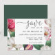 Com elegante charme rústico, este adorável casamento salvou a data em que a design tem uma magnólia colorida floresce em tons ricos de rosa, roxo e branco com grandes folhas verdes. A fonte usada nesta design é moderna e chic com letras minúsculas para a noiva e o noivo. Personalize o texto com seus detalhes. Um pacote de produtos de casamento correspondentes está disponível neste design distinto.