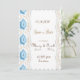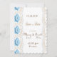 Rosas azuis com redemoinhos dourados enquadram este Save the Date ornamentado, evocando romance e celebração. Inspirado em motivos florais atemporais, captura a elegância com um toque de luxo. Um lindo souvenir para anunciar o dia do seu casamento.