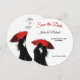 Celebre seu amor com este maravilhoso convite de casamento artístico, apresentando uma silhueta romântica de um casal compartilhando um momento íntimo sob um guarda-chuva vermelho. O elegante contraste preto-e-branco, aliado a um arrojamento vermelho, cria um eterno e dramático. Perfeito para casamentos modernos, parisienses, europeus e inspirados na safra. Personalize com seus detalhes e defina o tom para um dia inesquecível!