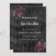 Escuro e bonito salve o cartão de encontro com até a Morte nos diz, rosas roxos escuros e um padrão de diamante preto. Tipografia de script. Personalize com sua própria foto.