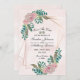 Um elegante design geométrico com rosas e fundo com cor d'água pintados à mão. Este convite faz parte de um convite de casamento completo.