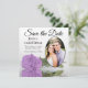Estas belas cartões salve a data são a maneira perfeita de deixar seus amigos e família saberem sobre seu próximo casamento. Eles apresentam um design floral que é moderno e elegante com um rosa lilás púrpura, de solteiro longo, refletindo em uma piscina de água com ondas e ondulações com sua foto em forma oval. A legenda: Salvar a data com espaço para seus nomes, data e local em um plano de fundo branco clássico. O dorso é uma cor púrpura clara marmoreada.