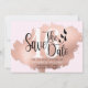 Moderno, Trendy Sweet 16 Aniversário Salve O Cartão De Data. Design apresenta um traço de folha de alumínio rosa dourado sobre um fundo cor-de-rosa brilhante, script de tipografia ''salvar a data'' e detalhes em letras negrito.