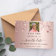 Um cartão de data glamouroso para uma festa de aniversário 50th (ou qualquer idade). Um fundo de gradiente rosa ouro. Decorado com estrelas. O texto: Salvar a Data é gravado com um script de estilo com letra de tendência grande. Personalize e adicione uma foto.