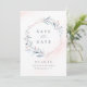 Verde moderno salve o cartão de data com design de folhagem botânica azul empoeirada rústica com cor d'água com folhas falsas de ouro rosa e quadro geométrico, simples e elegante, excelente para casamento rústico de verão verde e ouro, casamento de jardim botânico primavera. Ver todas as peças correspondentes na coleção