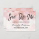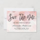Doce 16 Guarde A Data. Design com fundo em camadas rosa-ouro e script de pincel moderno ''salve a data''.
