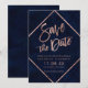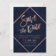 Rosa Dourada tipografia em marinho azul-d-água e listras geométricas faux-rosa dourado, salvo a data do casamento, perfeita para o casamento elegante e na moda,