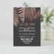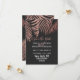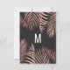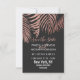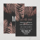 Folhas de fronte de palmeira de ouro rosa, elegantes, quic e modernas praias tropicais, impressas a preto, com letra falsa de sequência de ouro rosa, cartão de casamento "Salve-the-Date". Este design clássico e sofisticado é perfeito para o casal de competição de tendências e na moda. Personalize com sua própria mensagem na frente, assim como um monograma personalizado inicial no verso. Todas as impressão de fotos.