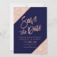 Rosa Dourada tipografia em um bloco de cores com brilho de ouro azul-rosa, personalizável, e stripes geométricas de ouro rosa faux salvam o casamento da data, perfeito para o casamento elegante e na moda,