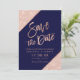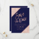 Reserve A Data Rosa dourado script glitter marinho azul salvar da