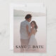 Moderno, delicadamente subestimado, salve a data design. A frente da placa permite que você adicione sua foto exclusiva de casais sob um gradiente de ouro rosa suave e romântico com a caligrafia 'salvar a data'. Personalize com suas informações exclusivas.