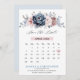 Cartão elegante e moderno de calendário de meados de verão com flores salve o cartão de data apresenta um buquê de rosas aquarela peônias em tons de ardósia, azul empoeirado, rosa empoeirado, rosa desbotado, mauve, salva com folhas botânicas verdes exuberantes e eucalipto. Por favor, encontre mais designs e variações correspondentes na minha loja "blissweddingpaperie". E sinta-se à vontade para entrar em contato comigo para mais personalização ou itens correspondentes.